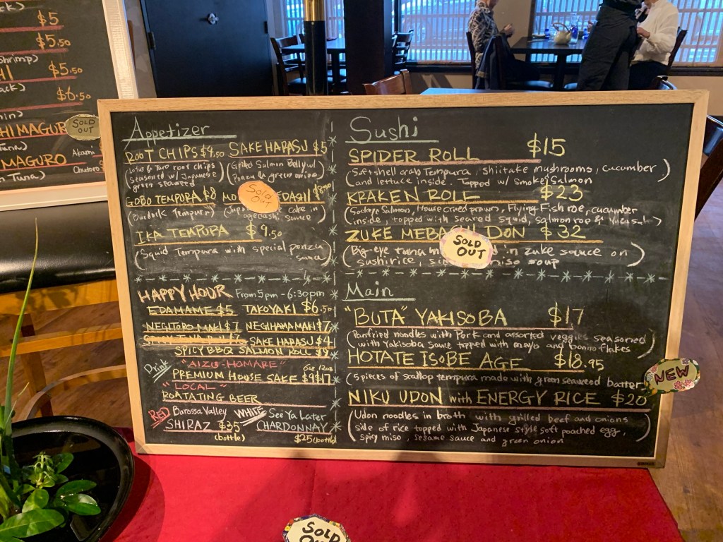 When one walks in, one is introduced to the specials board, which they encourage to take a photo of to browse at one’s leisure once seated.