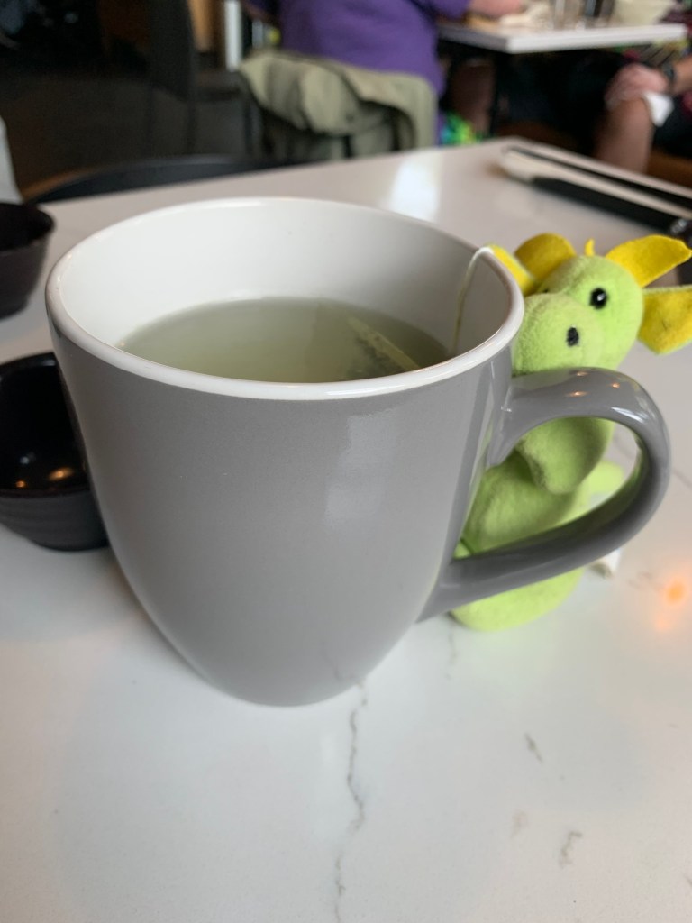 Dragon-kun came with me, but he felt shy because there were so many people. He stayed in my purse and peeked out at them.