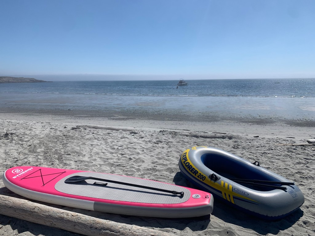 R. and I headed to Willows Beach with R.’s inflatable stand up paddle board and inflatable raft.