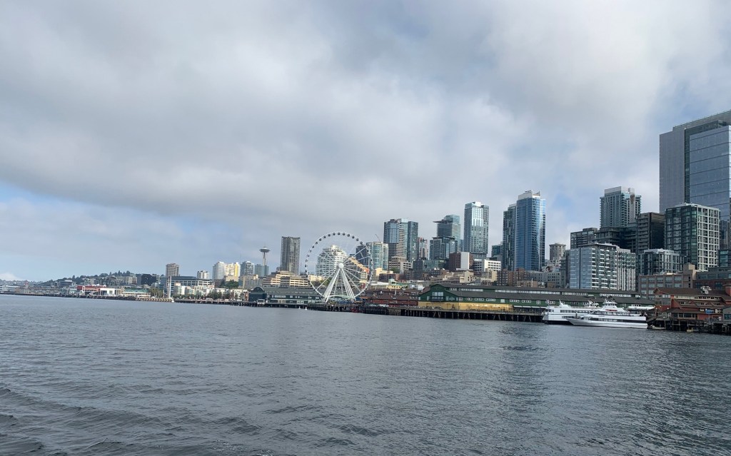 The ferry was delayed because of the foggy conditions on the water, once on the Seattle side there wasn’t any fog.