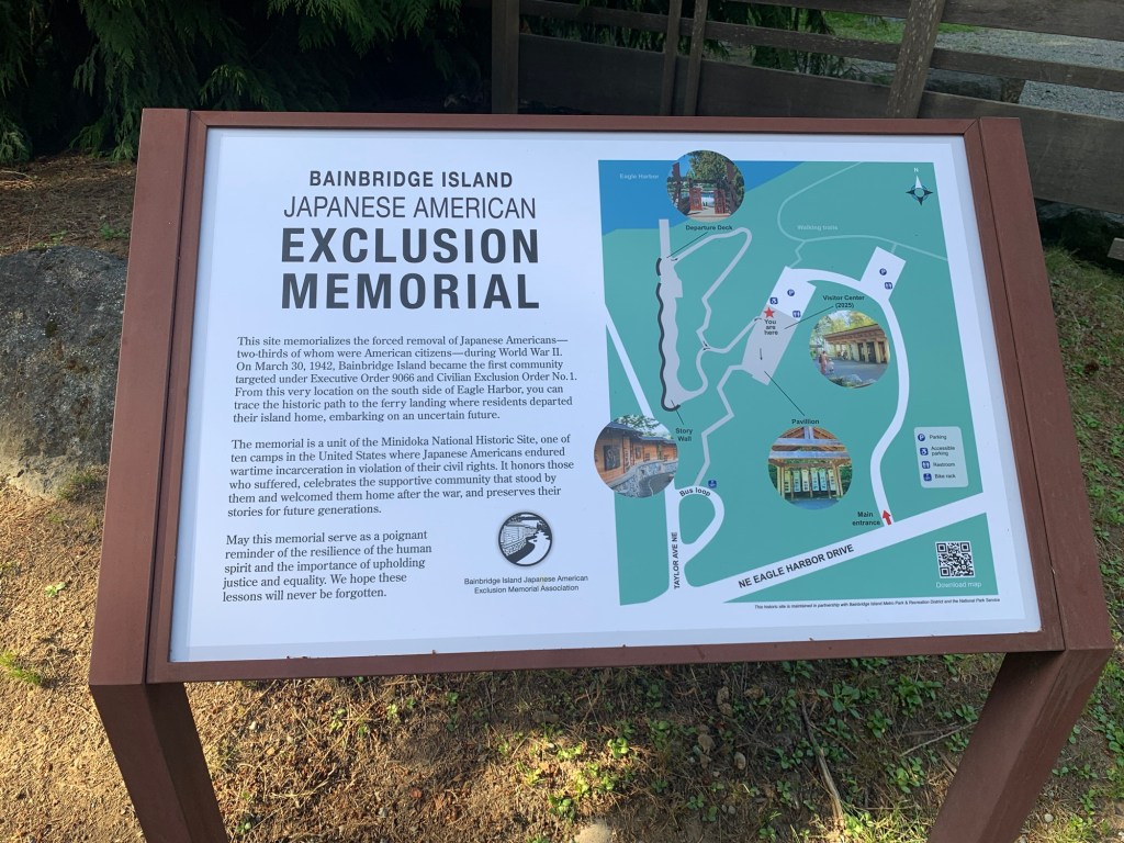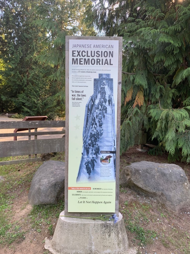 Our destination was the Japanese American Exclusion Memorial. The memorial is located where the first Japanese Americans were forcibly taken from the island to be brought to internment camps on the mainland during WWII.