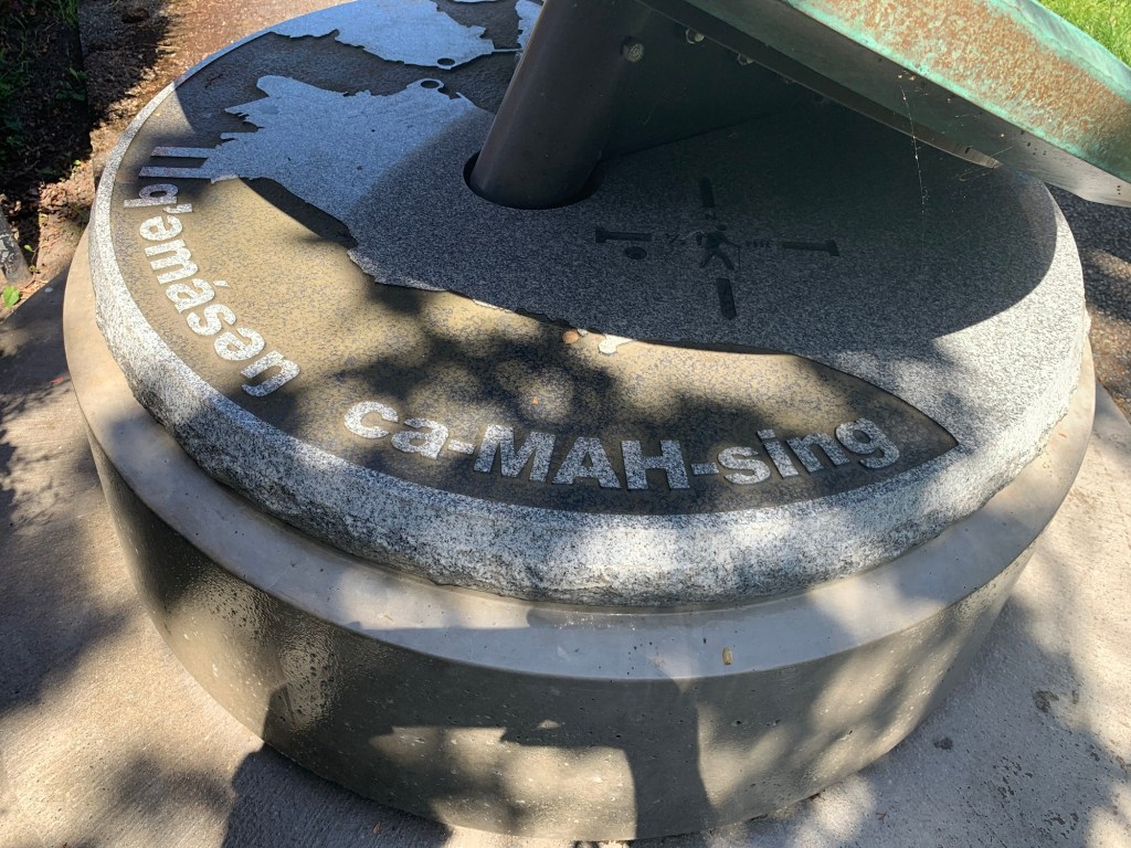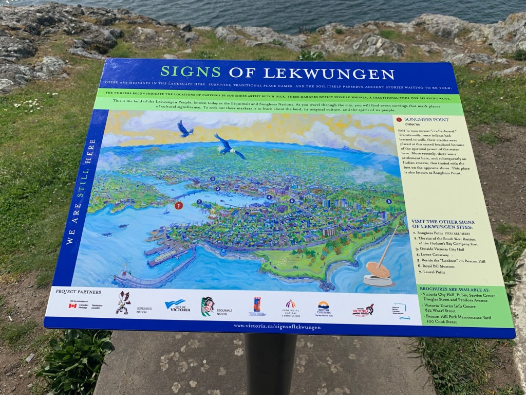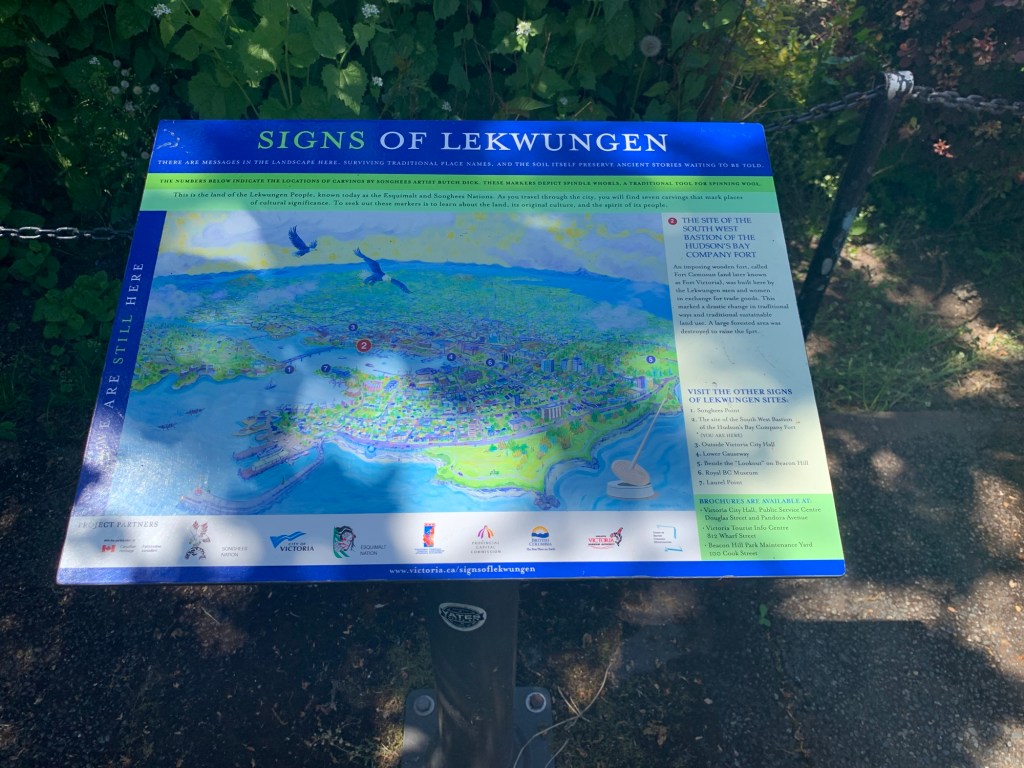 This point is called PAH-lu-tsuss meaning “Cradle-board”. According to the sign and the information brochure, this sacred headland was where traditionally cradles were places once the child learnt to walk. It was later the site of a settlement and then an Indian reserve which traded with the Hudson Bay Company Fort that was located at Bastion Square.