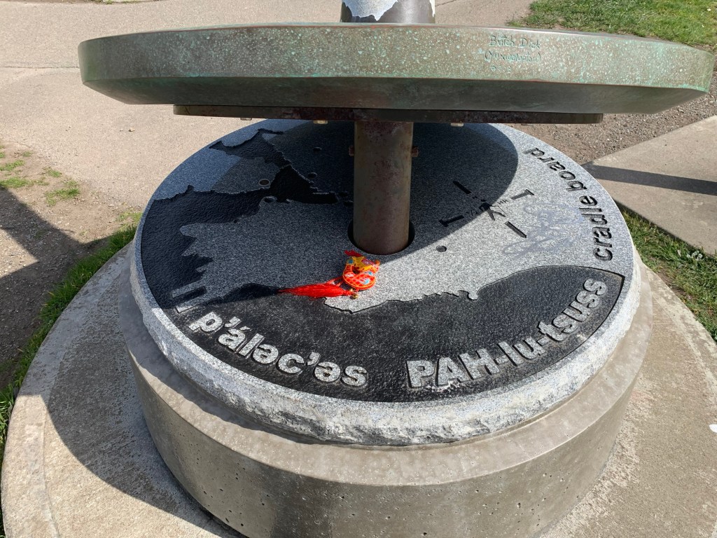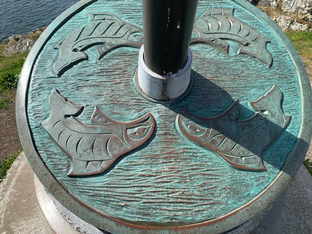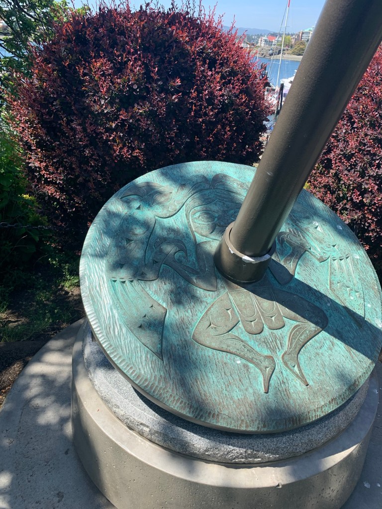 A while back I had mentioned that I would write about the giant spindle whorls that are dotted around the city of Victoria, marking the different culturally significant places for the Lekwungen (now known as the Esquimalt and Songhees) people.