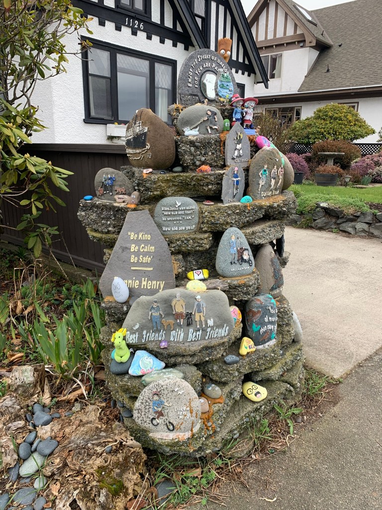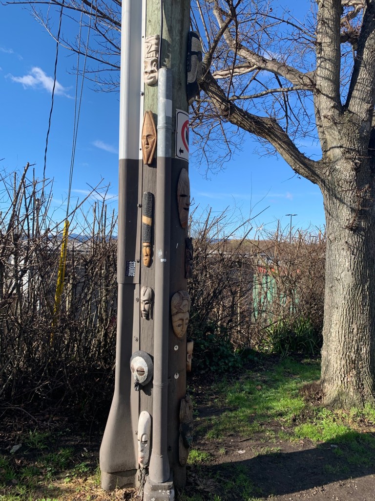 Walking around the point, past Fisherman’s Wharf, and the Canadian Coast Guard there was a pole covered in masks. one of the masks looked like another relative to Usagi-chan, but the lighting was wrong and the picture did not turn out. (Usagi-chan was tired today, so stayed at home).
