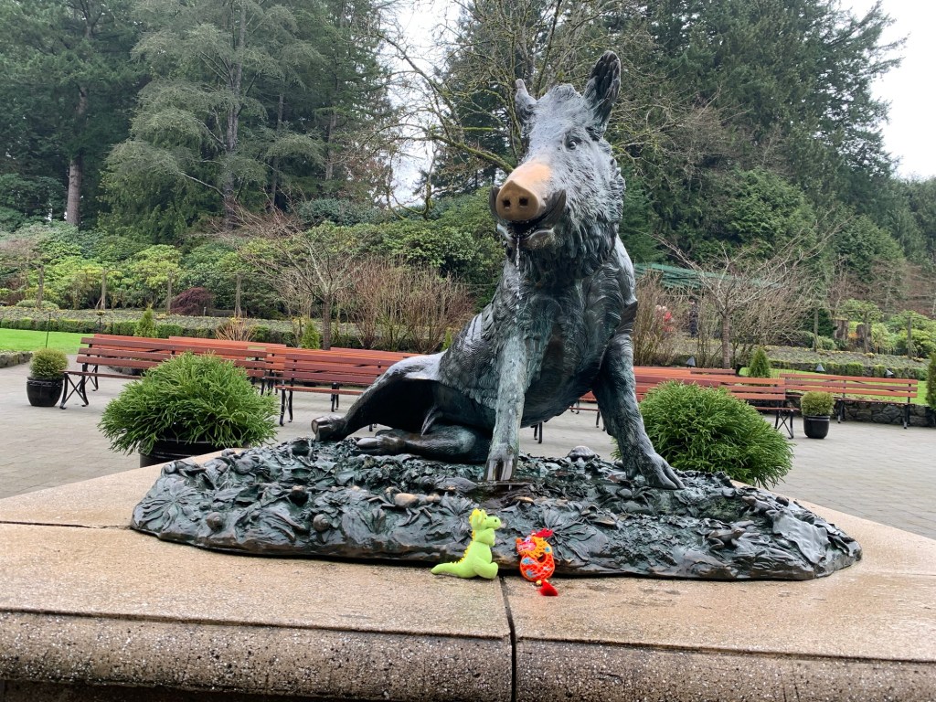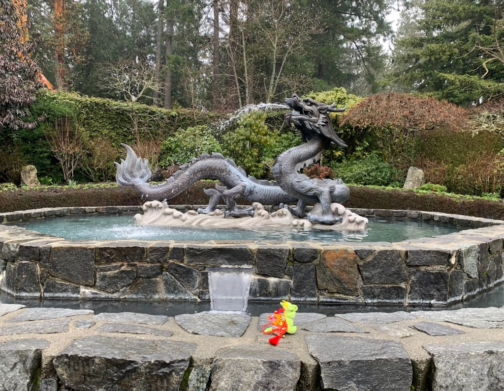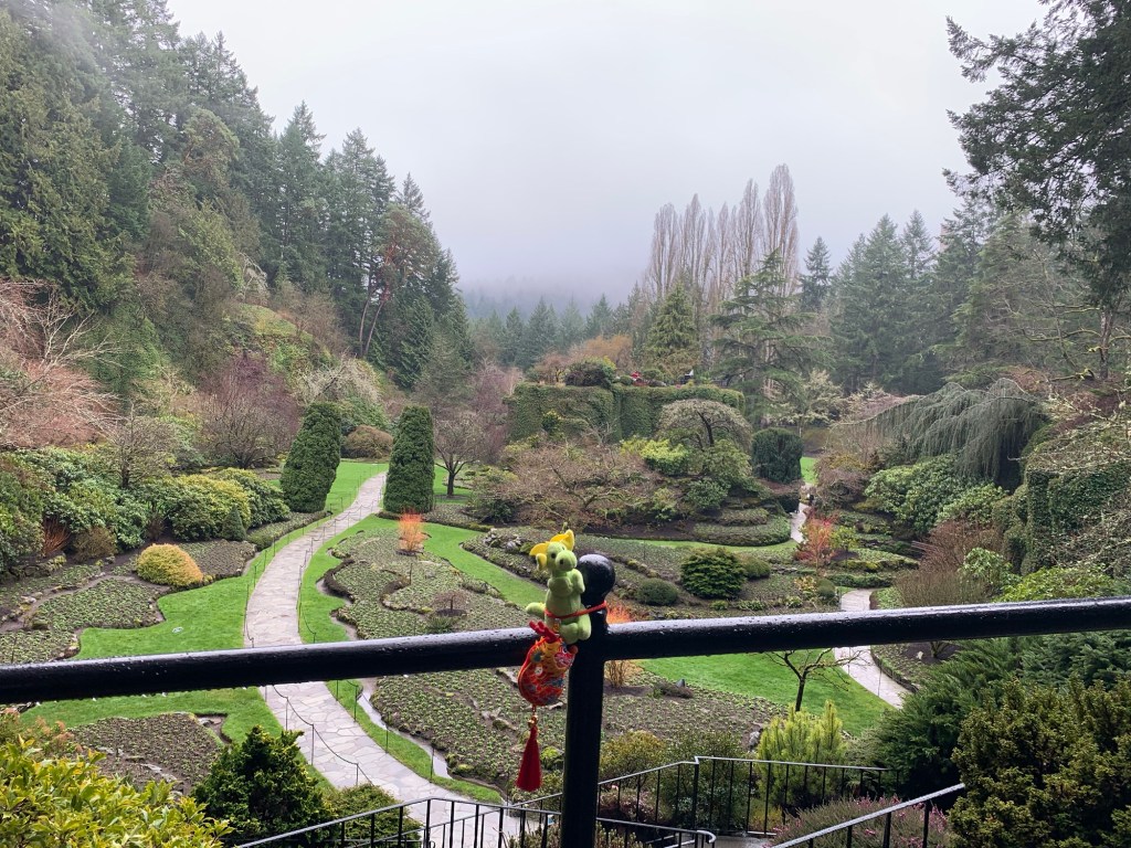 I was so excited about Ryuu and Dragon joining me on my walk around Butchart Gardens that I forgot to set my Fitbit to record the walk…so I’m not sure the distance.