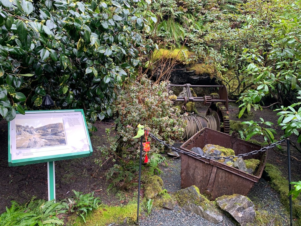 The Gardens was a limestone quarry which supplied limestone to the Portland cement plant. (Both quarry and cement plant were owned by the Butchart family). The garden was the idea of Jennie Butchart (wife of cement and quarry owner -Robert Pim Butchart)