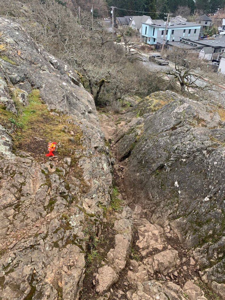 Well, except for a cave. According to the internet, and we know how reliable that can be, it is a mouth to an old mine… I know that children like climbing into that little space… I wonder how safe it is?