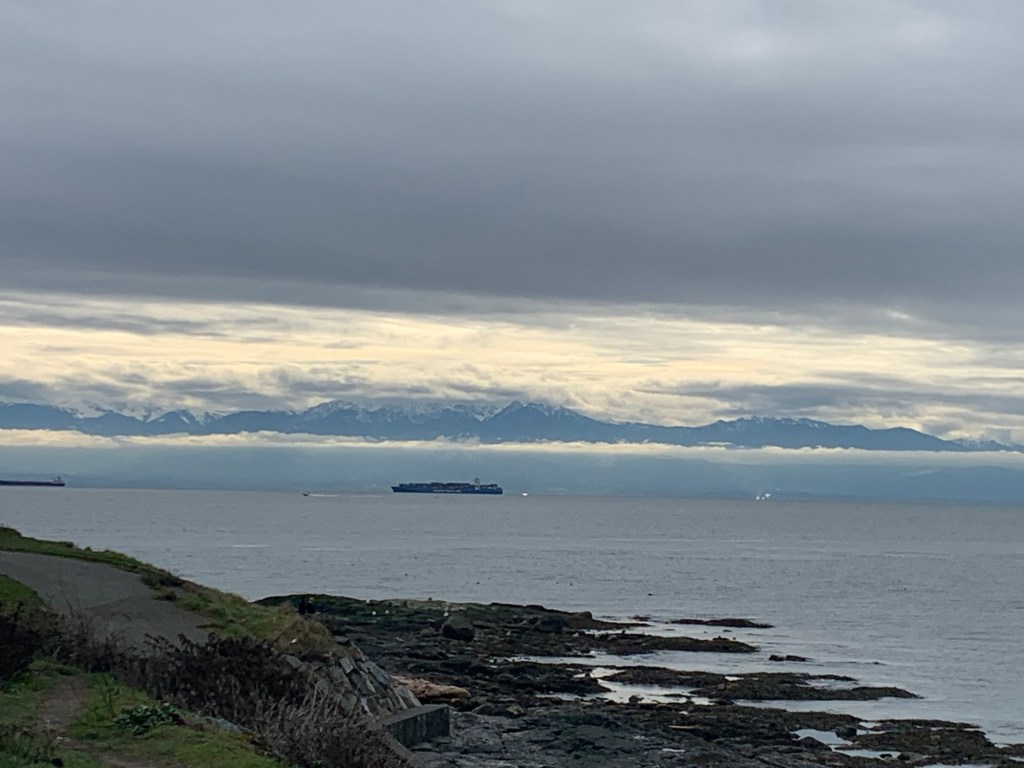 View from Victoria to the Olympic Mountains in Washington State