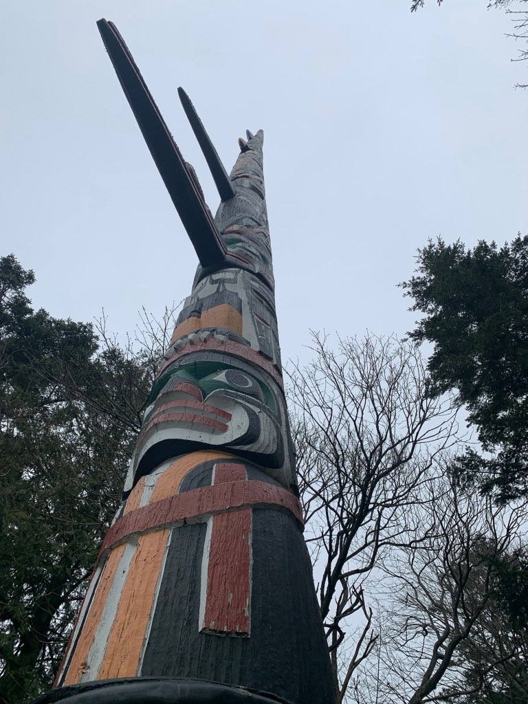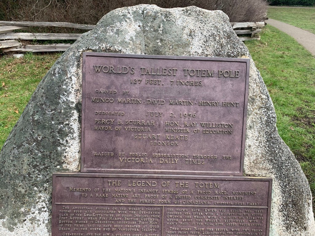 We walked along the coast to the world’s largest totem pole (according to the sign) in Beacon Hill Park. My father says he remembers watching the pole being carved when he was a very young boy.
