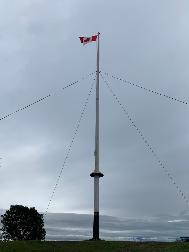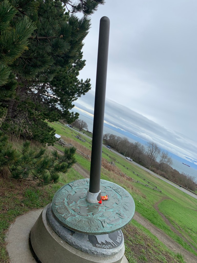 Flag pole on top of Beacon Hill. The Olympic Mountains are just about visible.