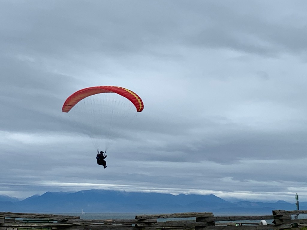 Walking along Dallas Road we came across some interesting art and people paragliding.