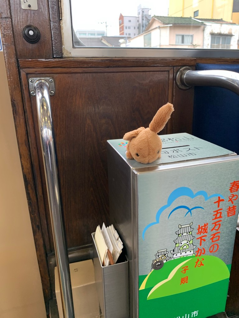 Usagi-chan and I boarded a streetcar and headed to Matsuyama Castle. Apparently Matsuyama is big on haiku…maybe it is all of Ehime as there have been a couple of temples where one can submit one’s own Haiku. I mention this because apparently one can also submit one’s haiku masterpiece on the streetcar.