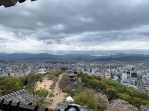 Matsuyama Castle is on top of a hill in the middle of the city. One can get to the top by walking, taking a cable car or a chair lift. Regardless of the rain I chose the chairlift because CHAIRLIFT!!!