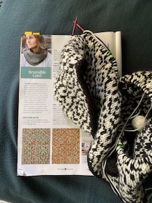 In the autumn of 2021 I made my brother a reversible cowl from “The Knitter” (Issue 140). It was the first time I had 1) knit something with more than one colour, and 2) made a something that is also reversible.