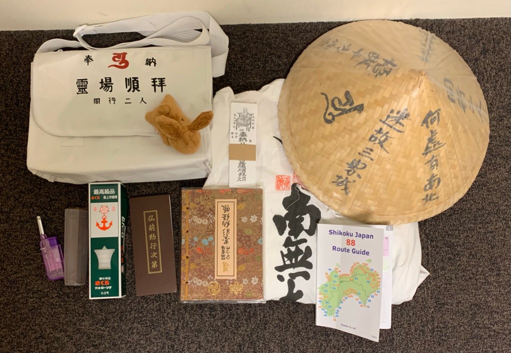 Pilgrim gear. Temple 1: Ryozenji Usage-chan with Kobo Daishi (Kukai)